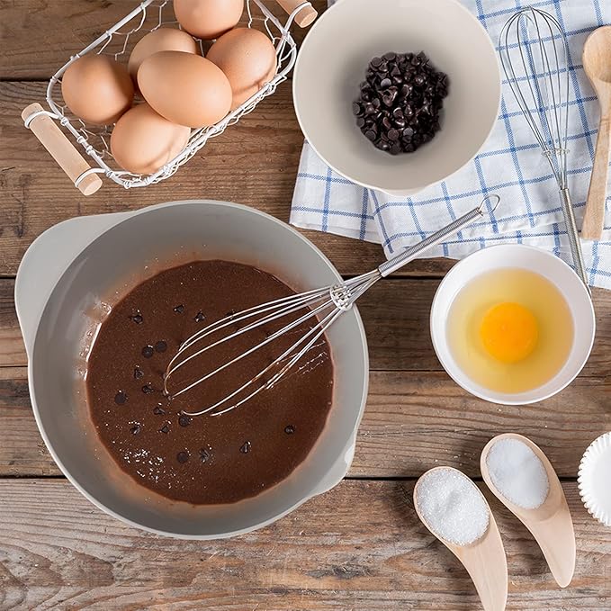 - [Non-slip & non-stinky] -The rubber layer at the base will keep these batter bowls from skidding or slipping during mixing. Ingredients won’t stick with the bowl’s non-stick surface, making lengthy mixing less tiring.
