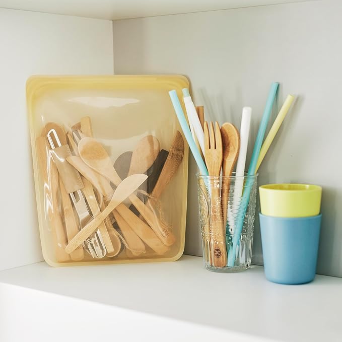 - REUSABLE, REWASHABLE CONTAINERS: Stasher silicone reusable storage bags make it easy to ditch single-use plastic and meet endless household needs. Safe for the dishwasher, microwave, oven (up to 425°F), and more.