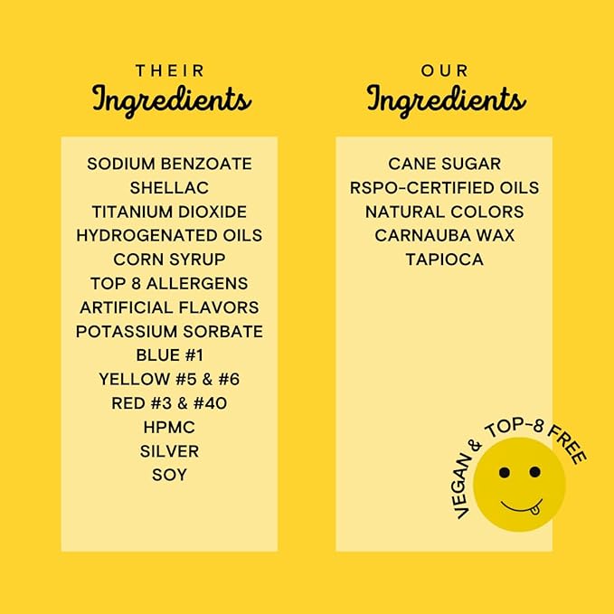 - NO CONFECTIONER'S GLAZE: Did you know most sprinkles get their shine from bug goop? We keep it vegan with a formula that's friendly to all creatures, big and small.