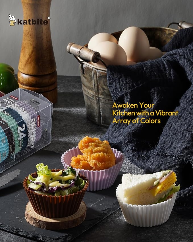 Silicone Cupcake Baking Cups Katbite 24 Pack Silicone Baking Cups Reusable Non-stick Heavy Duty Cupcake Liners for Baking Soft Pale Muffins Cups for Party Halloween Christmas