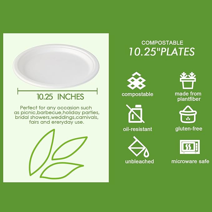 - Good For Environment: Made from sustainably sourced sugarcane fibers, these paper plates are 100% biodegradable and suitable for composting for easy disposal,making these plates good for the environment