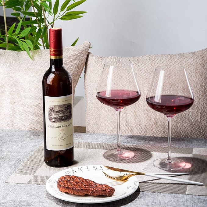 - Handcrafted --- Each wine glass is hand-blown by an experienced master craftsman, by whom the edge is delicately polished and cut for a thin and smooth appearance to provide a better sense of touch for your lips and enhance the quality and flavor of the wine.