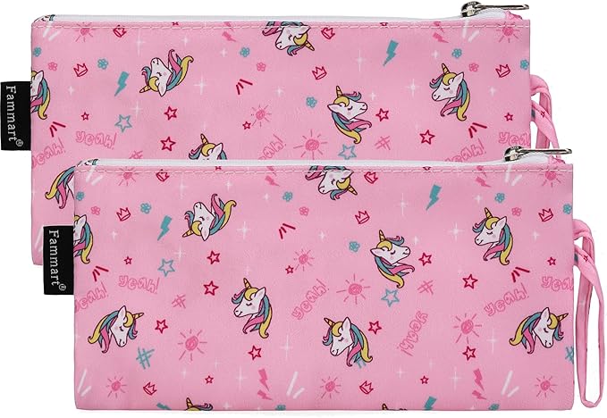 Reusable Sandwich Bag/Snack Bag for Kids & Adults, Dual Layer Lunch Bag with Handle, Washable, Food Safe, BPA Free (2-Pack, Unicorn)
