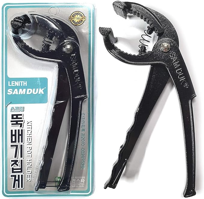 LENITH Aluminum Hot Pot Tongs Holder For Korean Stone Ceramic Bibimbap Bowl, Dolsot, Ddukbaegi, Sizzling Hot Pot (BLACK)