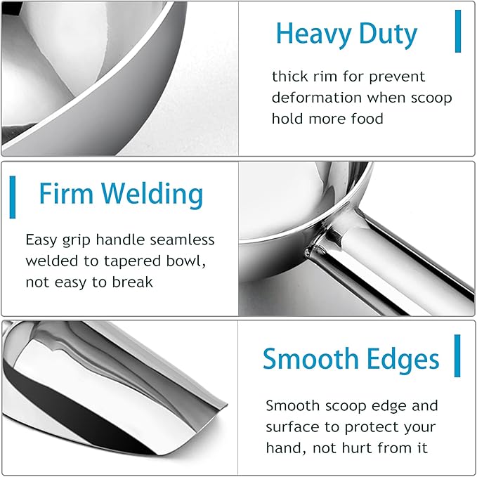 - 【HEALTHY & DURABLE】 P&P Chef ice scoop is made of high quality stainless steel, Will not peel off toxic coating, Healthy for daily use, Thick rim ensure the scoop hold heavy food without deforming, Handle solidly welded to the bowl is enough sturdy to repeated use, Durable for long-lasting service life