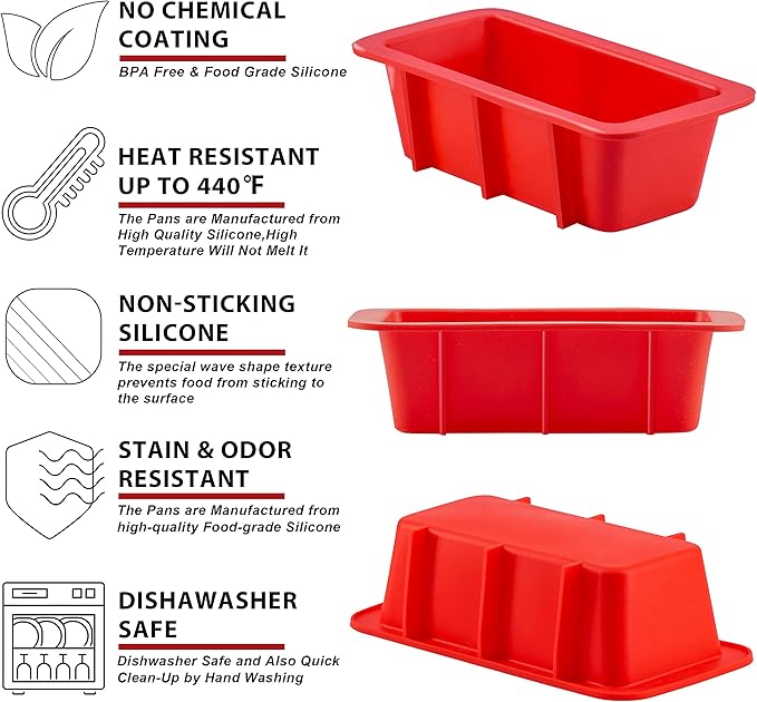 - 【 SAFE & ENVIRONMENT FRIENDLY 】: Anaeat Non-stick Loaf Pan is made of 100% food-grade silicone, which is BPA FREE, No Odor, Non-toxic, Heat resistant from -40℉ to 440℉ with its Durable, long lasting, hard to break materials, Use for Fridge, Toaster, Microwave & Oven safe. Anaeat silicone bread pans are Safe and EFFECTIVE for your baking.