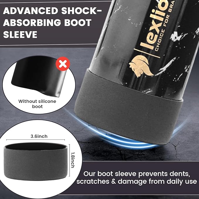 - ✅ SILICON BOOT/SLEEVE- Lexlion 32 oz stainless steel water bottle comes with an advanced shock-absorbing silicone material that helps to protect against dents, dings, scratches, and all the imperfections of your 32 oz insulated water bottle. You are protected against an inevitable drop in your water infuser bottle. This will extend the life of your flask. The infuser water bottle is BPA-free and made of soft and highest-quality material.