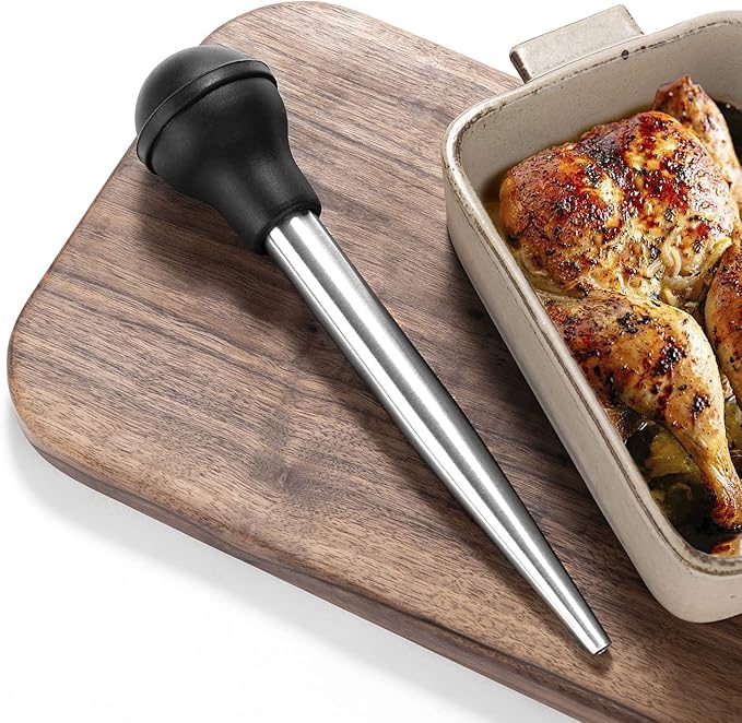 - BASTERS FOR COOKING - Our turkey baster set includes 1 pcs stainless steel turkey baster, 2 pcs baster syringe needles and 1 pcs cleaning brush,used for cooking and BBQ. Prior to baking or grilling, attach the needle included to inject and infuse flavorful juices into your roasts and cuts of meat. You also can remove the excess grease with this food baster.