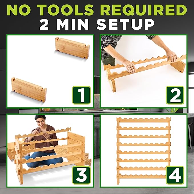 - 8 TIER STACKABLE DESIGN: Features a layered structure w/ stackable design. Each piece of the bamboo wood has notches & slots which are deep so they can fit together well, makes the wine display shelf more sturdy & wobble-free on the wood floor or the carpet