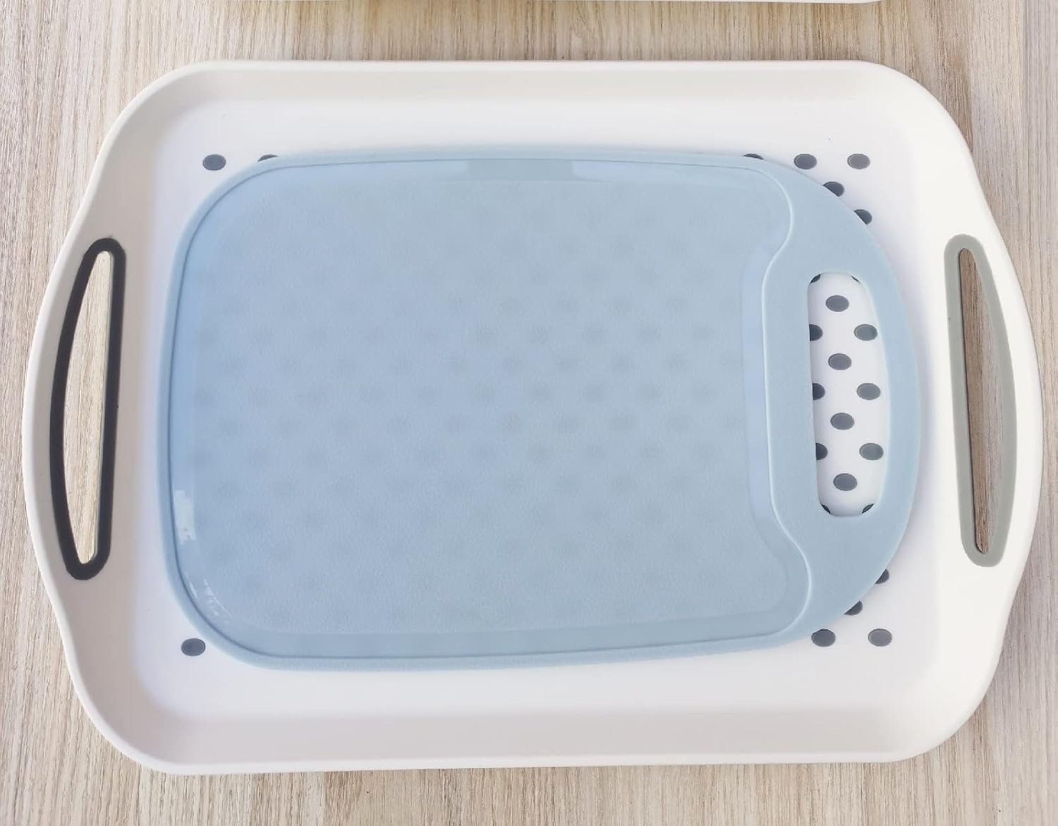 - Contains a vegetable and fruit cutting board that can be used on both sides, made of PP, small and portable, and easy to clean. Great for outdoor home kitchens