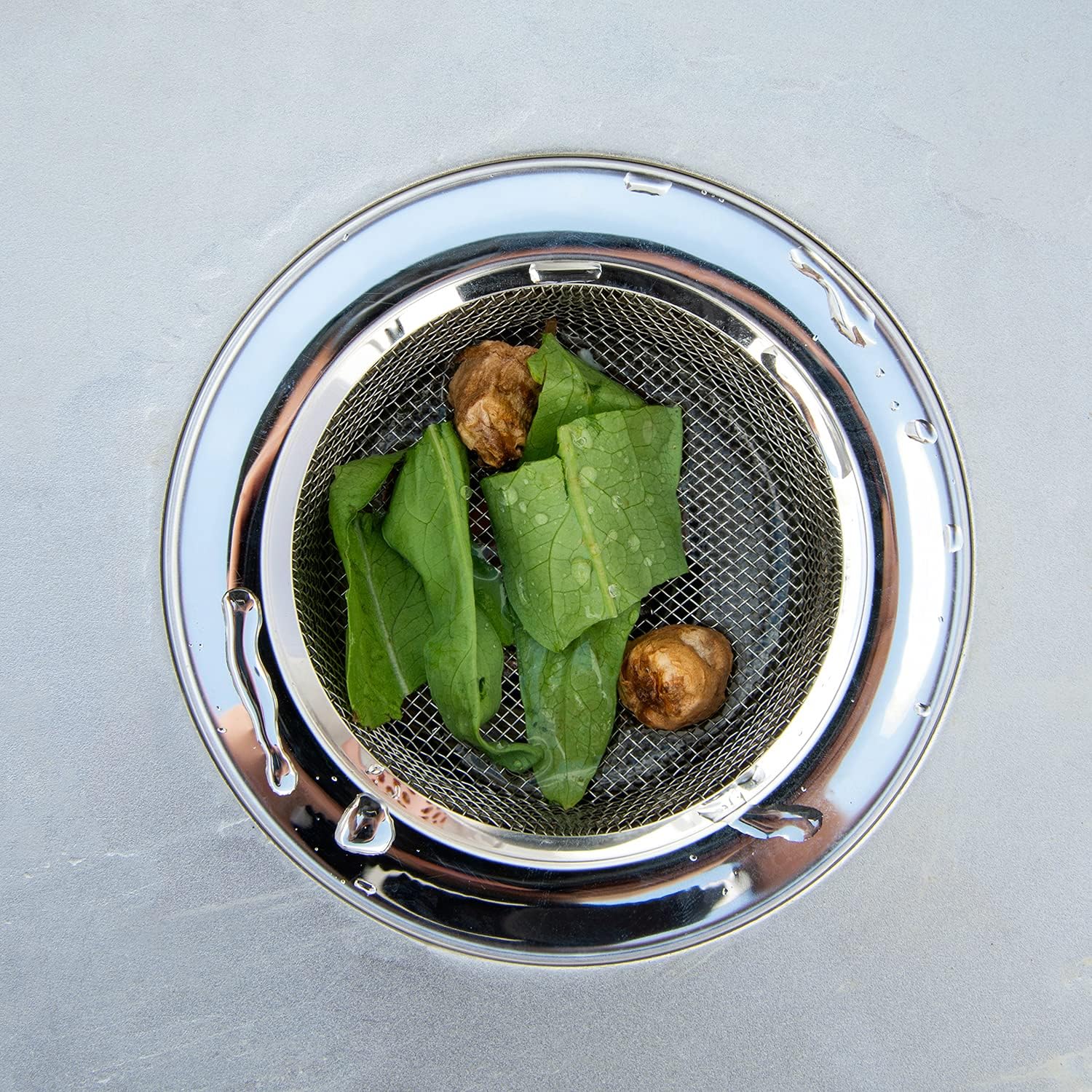 - 2 PCS Stainless Steel Kitchen Sink Strainer : 4.5"; inner filter: 3"; depth: 1" . Fit most sink drains and garbage disposals.