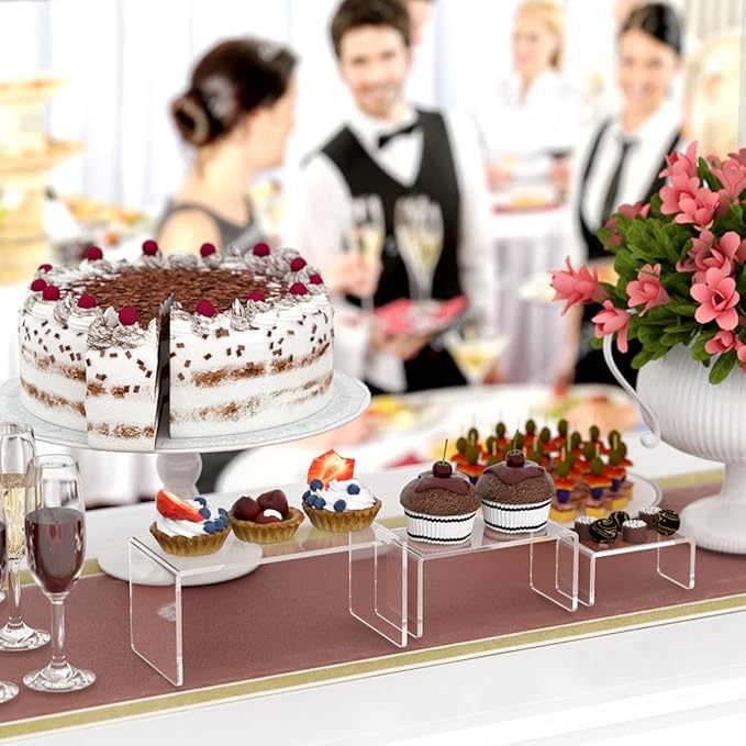 - DYNAMIC FLOATING EFFECT- Each display riser stand is made of super clear acrylic plexiglass, which is almost invisible and you can enjoy the visual effect of items floating in the air. The crystal clear acrylic display racks work nicely for home party, wedding and birthday celebration, which can decorate your treats table and make the table more appealing for the events by showing cakes, desserts, candies, snacks and plants etc.