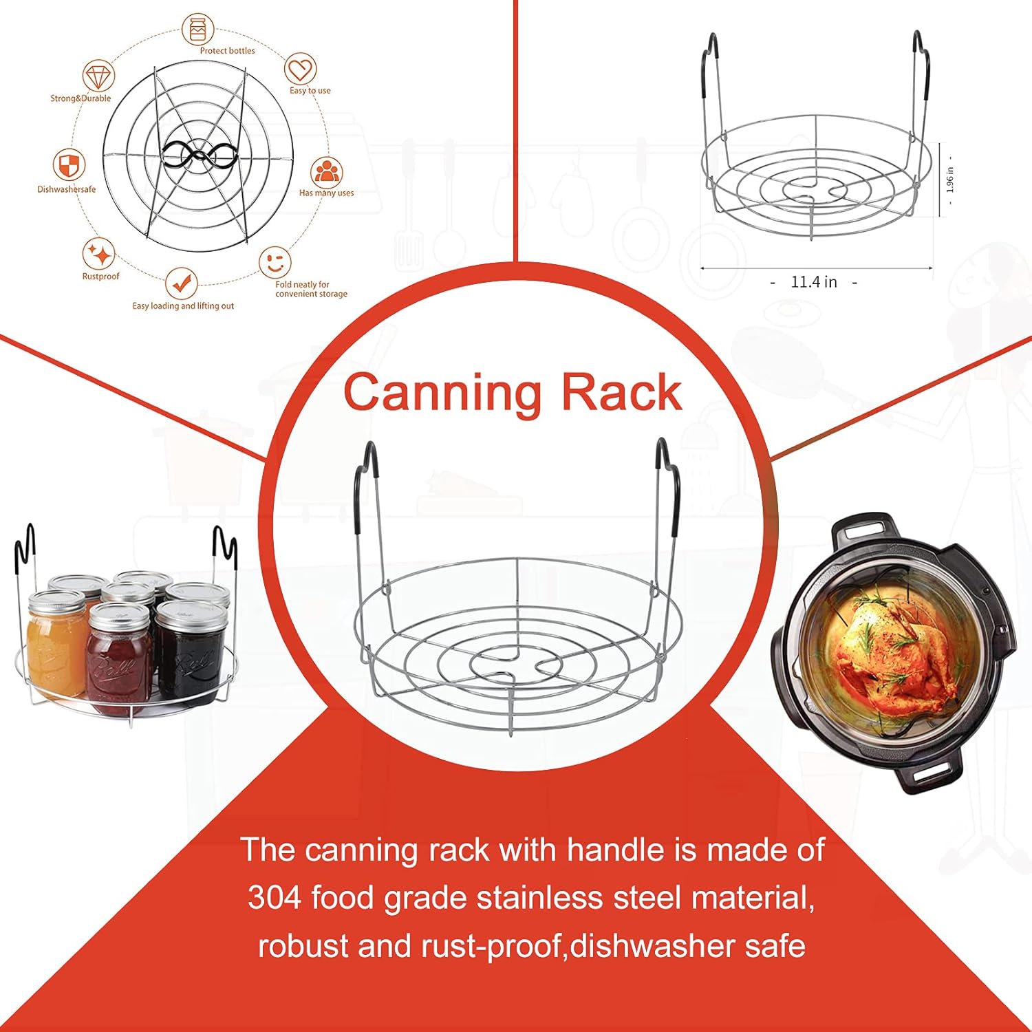 - [Easy Storage Canning Rack] Stainless steel Foldable Canning Rack stops jars from rattling and breaking while inside boiling pots. Durable, rustproof, and dishwasher safe.