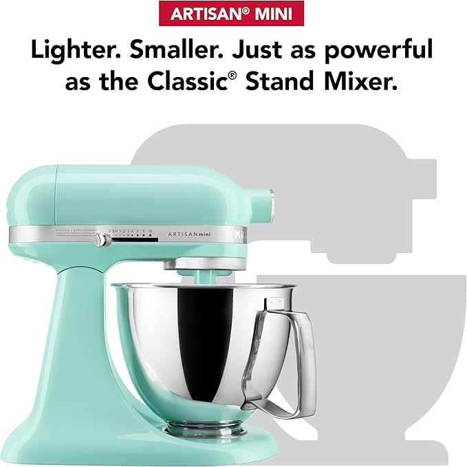 - Lighter. Smaller. Just as Powerful. With the same power as the KitchenAid Classic Stand Mixer, the Artisan Mini weighs less so it's easier to move around and is smaller, taking up less counter space.