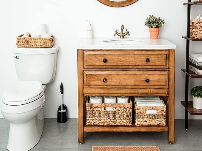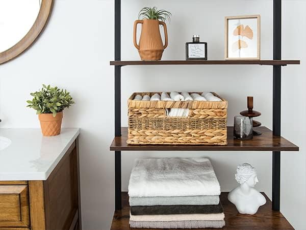 StorageWorks Large Rectangular Wicker Basket, Water Hyacinth and Seagrass Storage Basket with Built-in Handles, 1 Pack