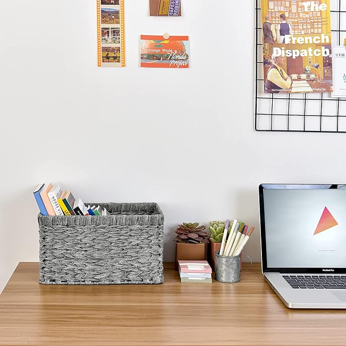 - Multiple Function - Moisture-proof material makes the wicker bins easy to keep clean, perfect for storage use in kitchen, bathroom, and entryway to store foods, personal care products, crafts, keys, etc.