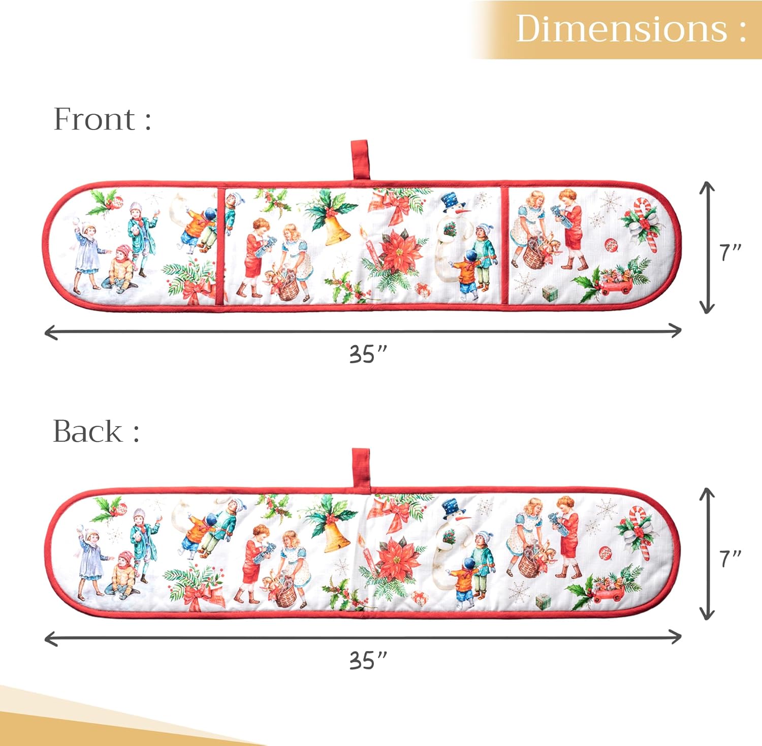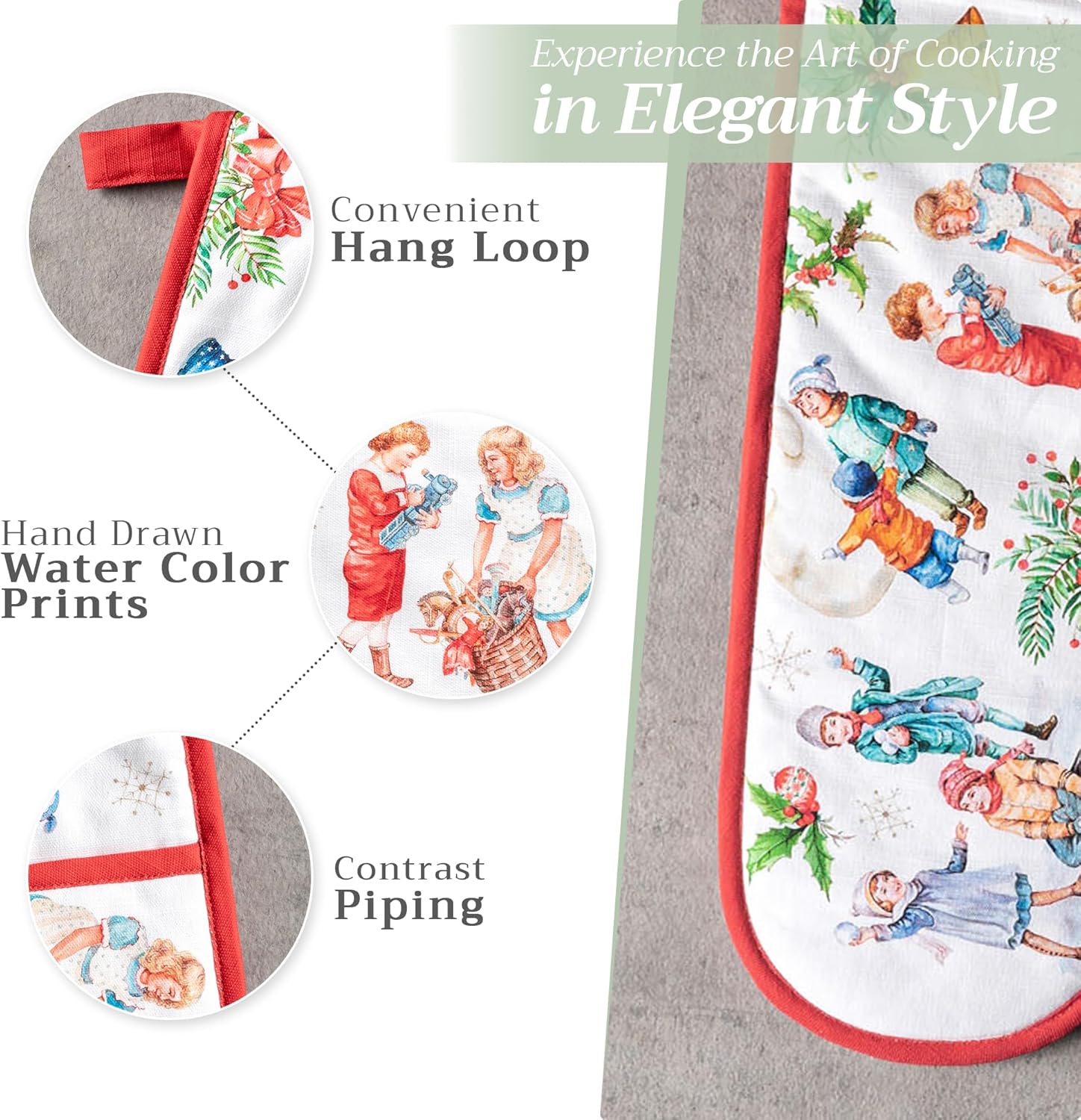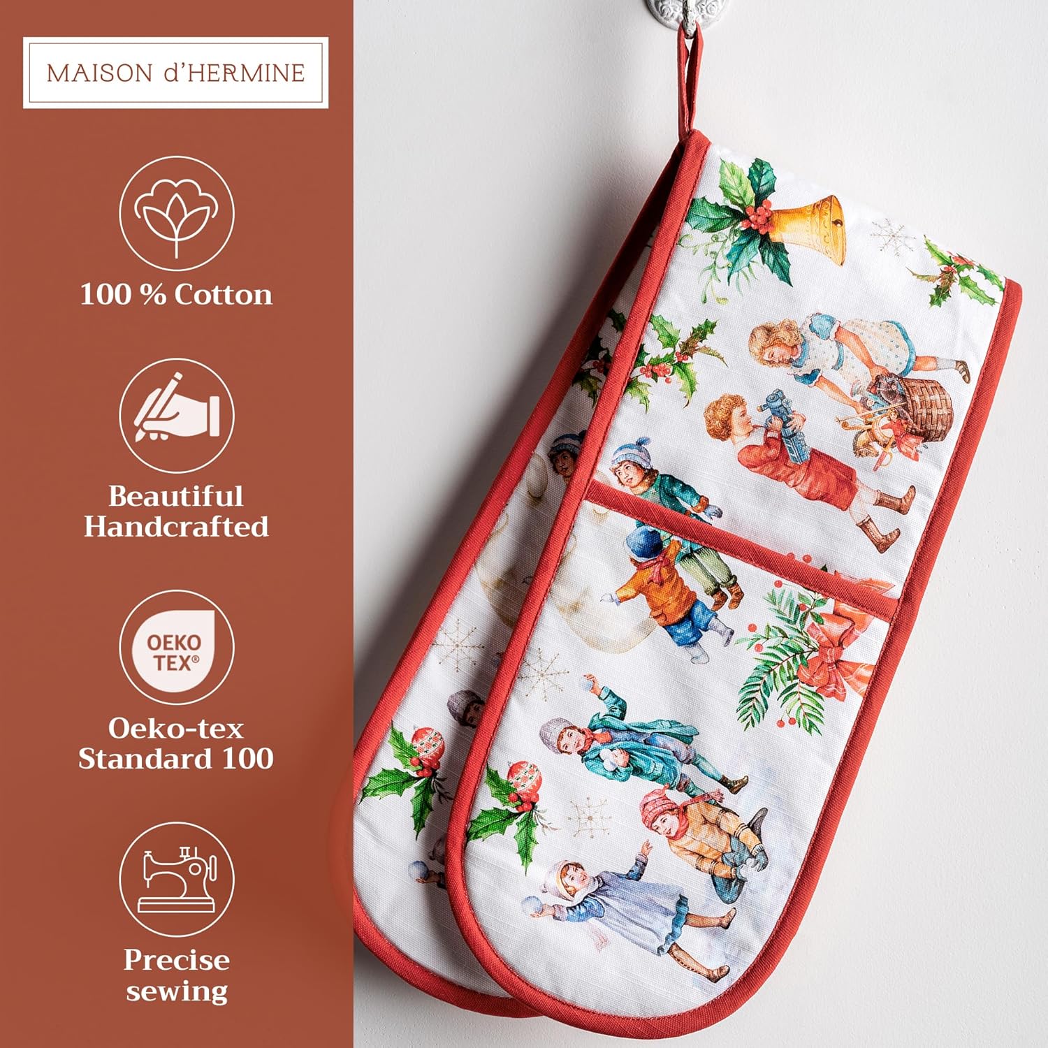 - Package includes: Includes 1 double oven mitt sized 7"x35". Perfect for handling hot cookware safely while adding a touch of European elegance to your kitchen. Designed in Europe and made in India with care