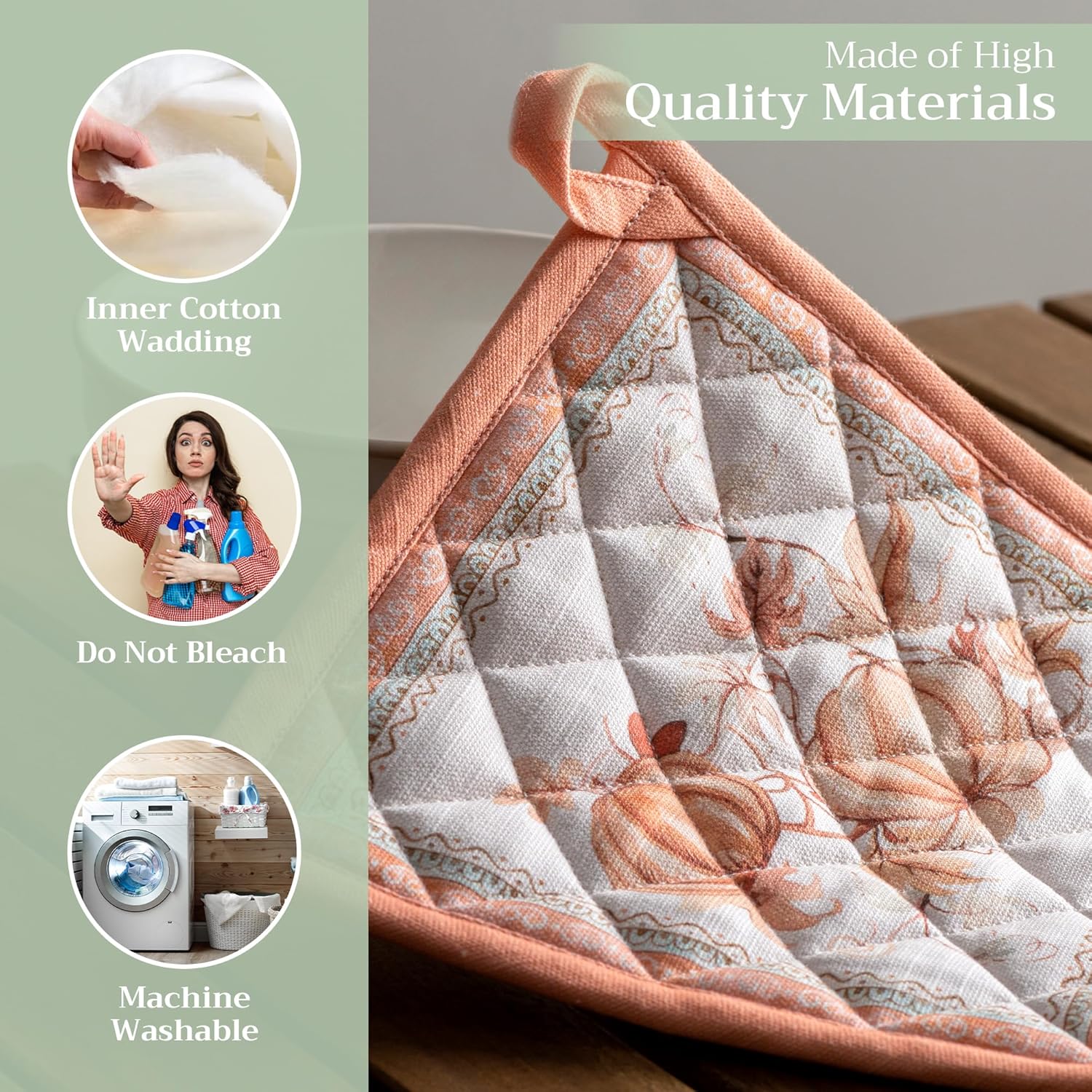 - 100% Quilted cotton: Made from premium quilted cotton, our pot holder ensures safe handling of hot pans or dishes. The soft, durable build provides excellent heat resistance and grip—perfect for everyday cooking and baking needs