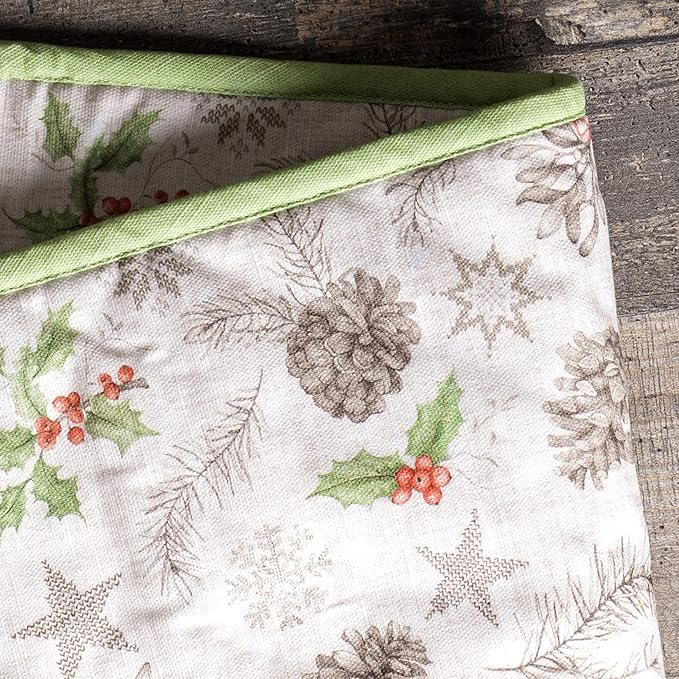 Maison d' Hermine Double Oven Mitts 100% Cotton 7"x35" Double Oven Mitt Heat Resistant BBQ Cooking Gloves with Loop, Baking, Grilling, Home, Kitchen, Handling Hot Pans (Christmas Dew)