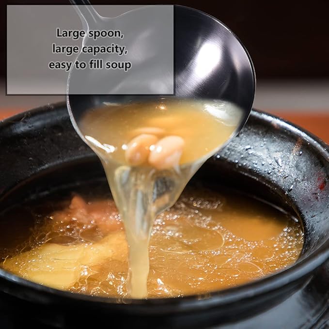 - Made of food grade 304 stainless steel. Safe, rustproof, durable and will last long. Modern design in line with popular vision, loved by culinary enthusiasts, Newness Soup Ladle is the ideal choice for you.