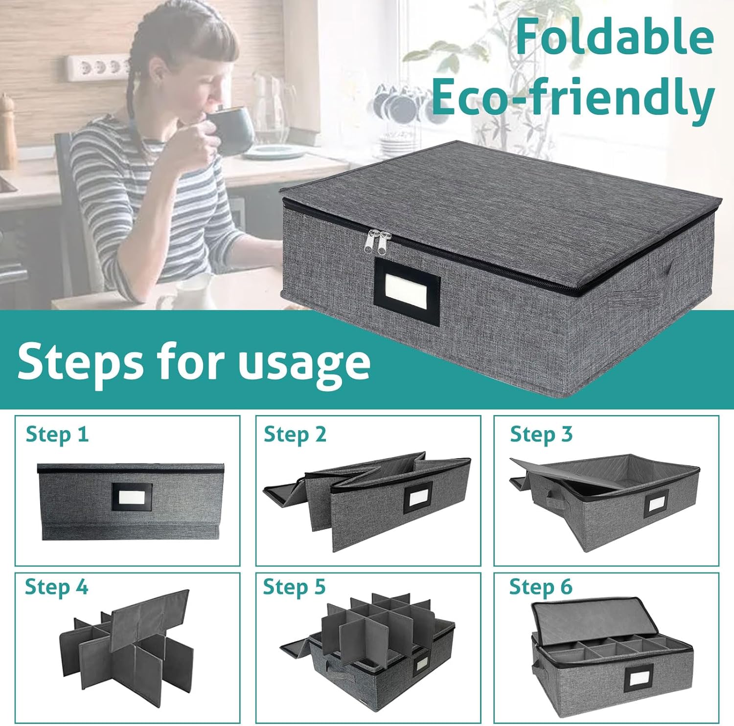 VERONLY Mug and Cup Storage Box with Dividers, Coffee Mug Storage Case China Storage Containers Hard Shell with Lid and Handles, Stackable for 12 Coffee Mugs, Tea Cups, Moving & Packing (Dark Grey)