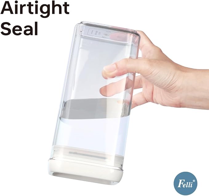 - AVAILABLE IN VARIOUS SIZES & SHAPES: The Felli Flip-Tite container comes in a variety of sizes and shapes to meet different food storage needs. The 4" REGULAR and RECTANGULAR sizes are perfect for organizing small kitchen counters and pantries, making handling and pouring easy. The 5" LARGE size is ideal for storing items like sugar and beans that need scooping. The 6" XL size is specifically designed for storing large quantities of food such as rice, powder, and flour, which require measuring spoons. We offer a versatile storage solution to suit all your needs.