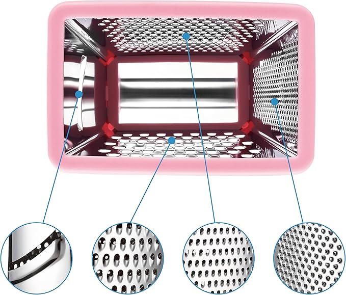 Spring Chef Professional Stainless Steel XL Parmesan Cheese Grater with Handle - 4 Sided Box Grater for Kitchen - Dishwasher Safe Carrot Shredder for Potato, Vegetables, Ginger - Pink Lemonade