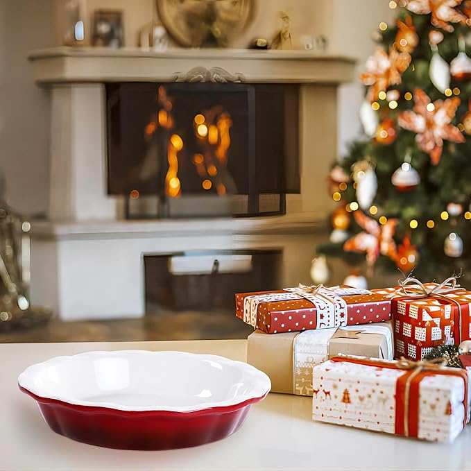 Lareina Pie Pans for Baking, Ceramic 9 Inch Deep Pie Dish with Rippled Edge for Apple Pie, Pecan Pie, Colorful and Durable Pie Plate, Christmas Gifts for Women, Set of 2, Red
