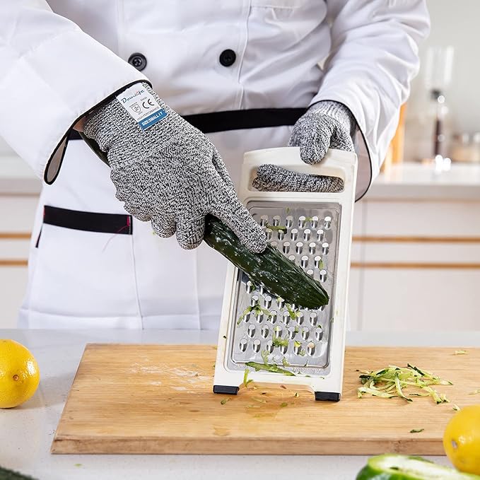 Dowellife 3 Pairs Cut Resistant Gloves Food Grade Level 5 Protection, Safety Kitchen Cuts Gloves for Mandolin Slicing, Fish Fillet, Oyster Shucking, Meat Cutting and Wood Carving (Black Gray, Medium)
