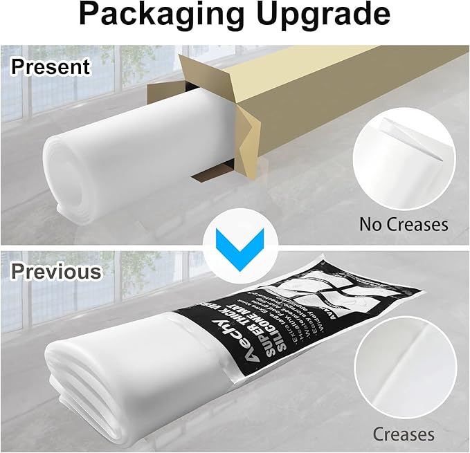 - 【ROLL UP AND SHIP 】: AECHY silicone kitchen counter mat packaging is upgraded from folding to rolling, in order to provide customers with a better experience. You will no longer suffer from mat crease. The 35.3"x23.5"x0.08" extra large silicone mat is big enough to meet your needs about protecting all size countertop. One dollar coin thickness, up to twice as thick as regular silicone craft mat. The mat lay flat without any wrinkle, stronger and more durable.
