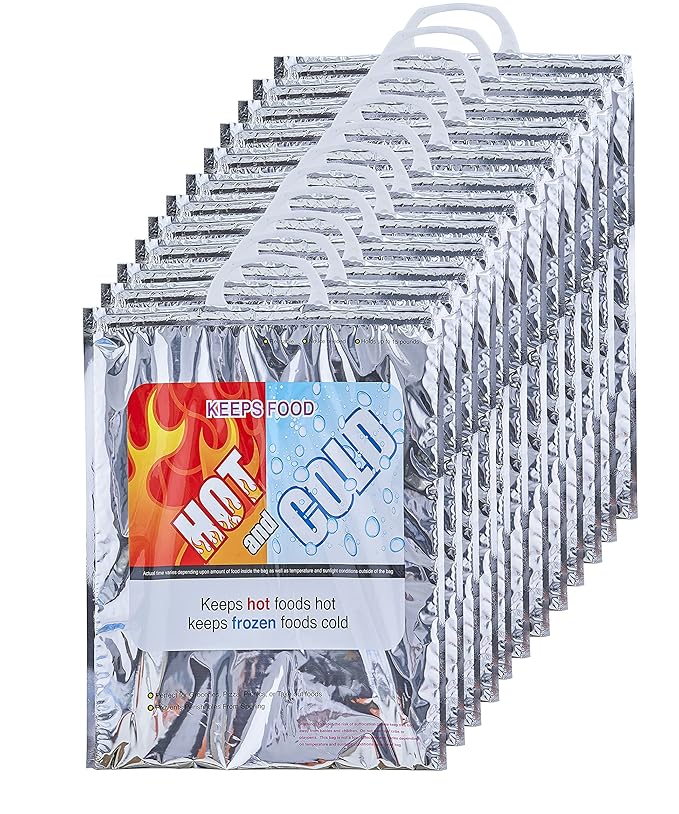 - ✅ TRIPLE LAYER DESIGN - Most other bags are single layer and aren't efficient at maintaining internal temperatures or will start to leak moisture. Our bags feature a sturdy thermal aluminum outer layer, an inner EPE (eco friendly plastic) waterproof layer and a final inner PE non toxic film layer.