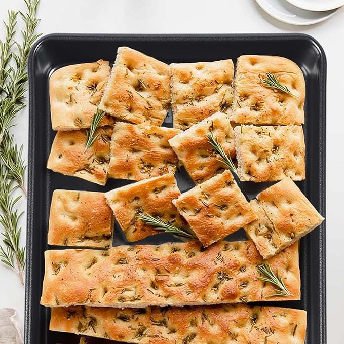 - 【DURABLE MATERIAL】Heat resistant to 450℉, heavy duty carbon steel material prevents water buildup and rusting, but cannot be immersed for long periods of time, and it is recommended to avoid prolonged contact with strong acids when using the baking pans in order to extend their life.