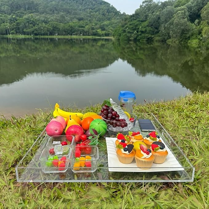 - Multifunctional: Serving tray for serving breakfast, appetizers, coffee, drinks, desserts, snacks, fruit, cheese, food; Decorative organizer tray for cosmetics, jewelry, remote, glasses, ornaments, magazines, Tray can be put on an ottoman, bed, coffee table and couch, It’s elegant to be put on any tabletop or countertop as an accessory