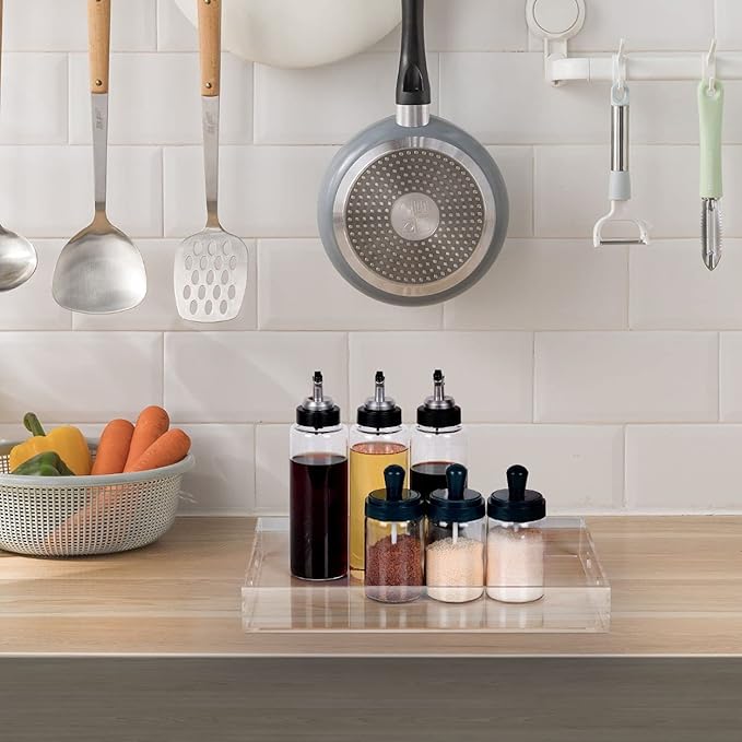 Modern Acrylic Ottoman Tray with Cutout Handles, Acrylic Serving, Organizer Decorative for Living Room, Bedroom,Bathroom and Kitchen Tabletop (Clear, 11x14 Inch)