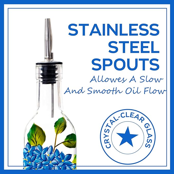 - Elegant Hand-Painted Design: YIYUKODO's glass olive oil bottle features a stunning hand-painted pattern, adding a touch of artistry and sophistication to your kitchen.