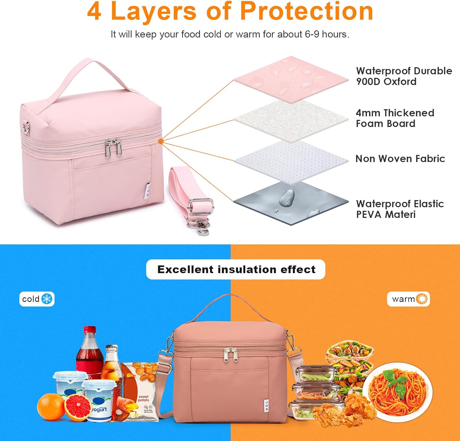 - Portable and cute design: this lunch bag is made of waterproof nylon outside, it’s lightweight and tear resistant; With two ways of carrying- top handle and cross-body by a detachable and adjustable long shoulder strap.