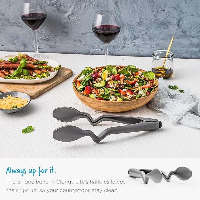 Dreamfarm Clongs Lite Nylon Kitchen Cooking Tongs with Click-Lock Open & Close - 10.5" Gray