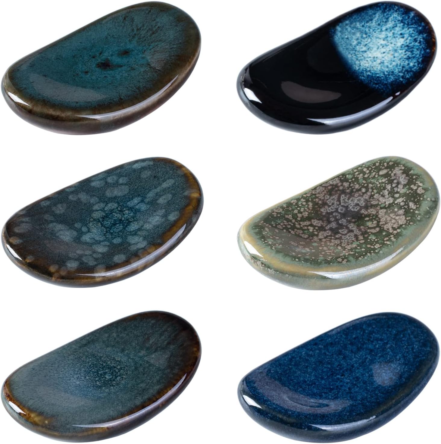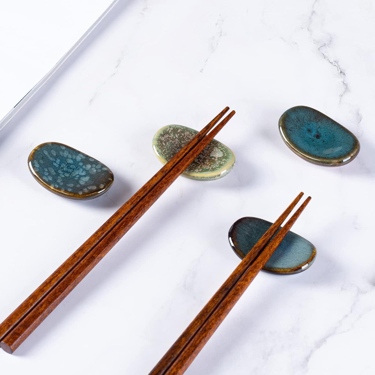 - 6 PCS INCLUDED - Each measuring 2.2 inches in length and 1.4 inches in width. The reactive glaze gives each Chopstick Holder a unique and beautiful color.