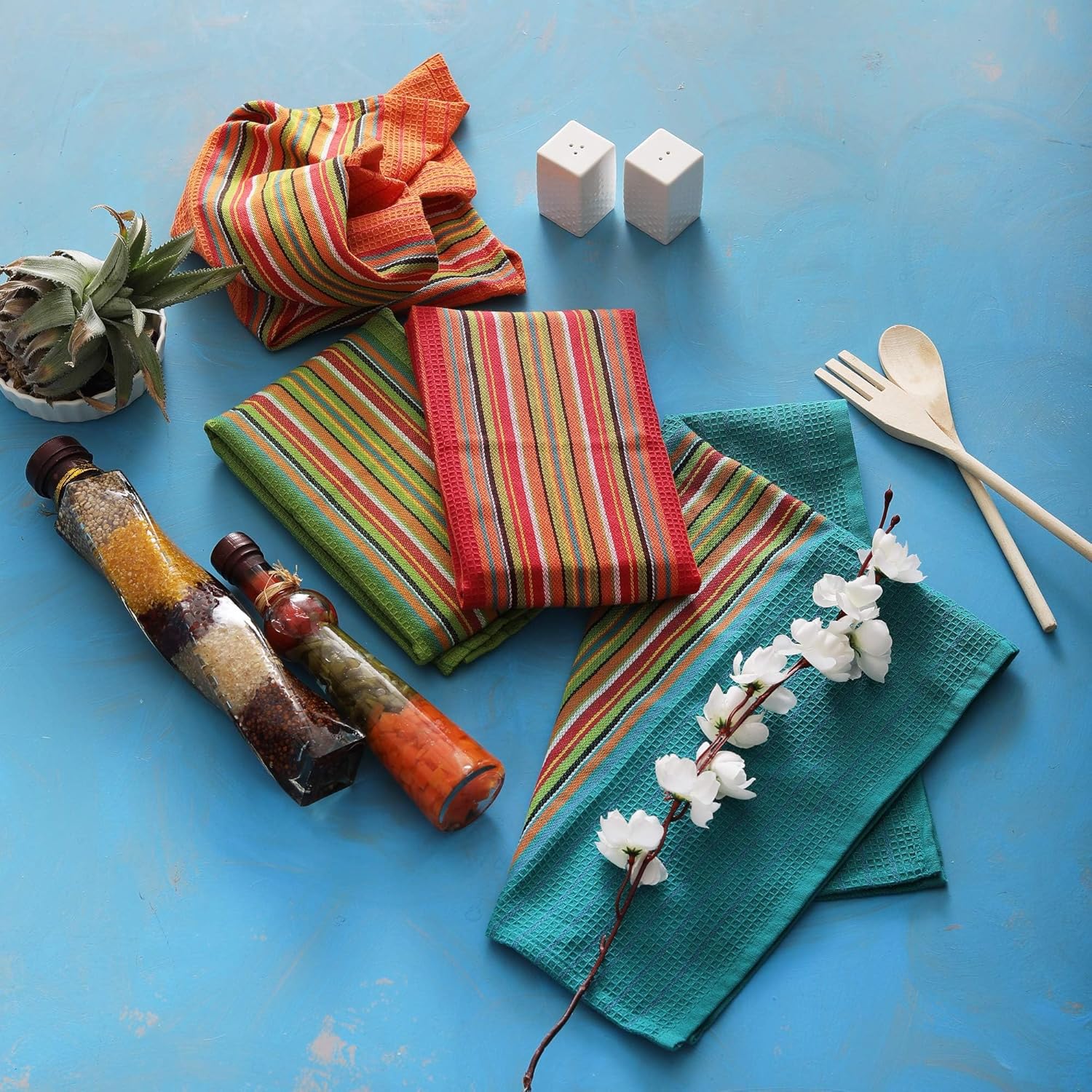 - 100% Cotton for Maximum Absorbency – These salsa-style kitchen towels are made from thick, high-quality cotton that soaks up spills, dries dishes fast, and handles kitchen messes with ease.