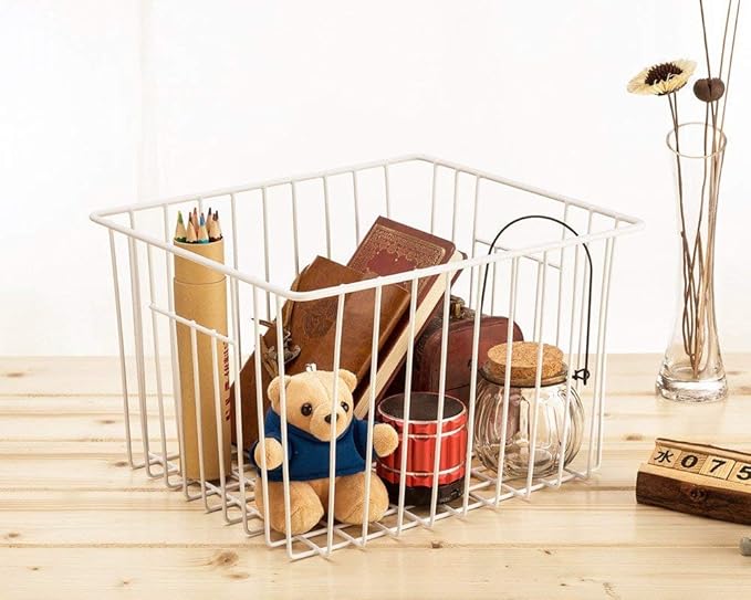 SANNO Freezer Baskets Freezer Wire Storage Basket, Organizer Food Storage Bin with Handles for Cabinets, Pantry, Closets, Bedrooms 11.8" x 11.8" x7"