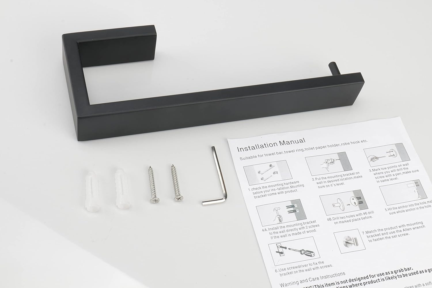 TocTen Hand Towel Holder/Towel Ring - Thicken SUS304 Stainless Steel Bathroom Hand Towel Hanger, 9 Inch Heavy Duty Wall Mounted Towel Rack, Square Hand Towel Bar for Bathroom Hardware (Black, 9 in)