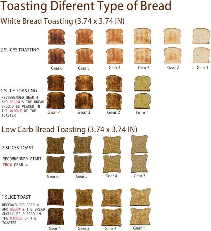 - 【Precision Control & Easy Clean】- 6 browning settings (70s-210s) + removable crumb tray (collected 87% of debris in tests). Anti-stick coating and cord storage.