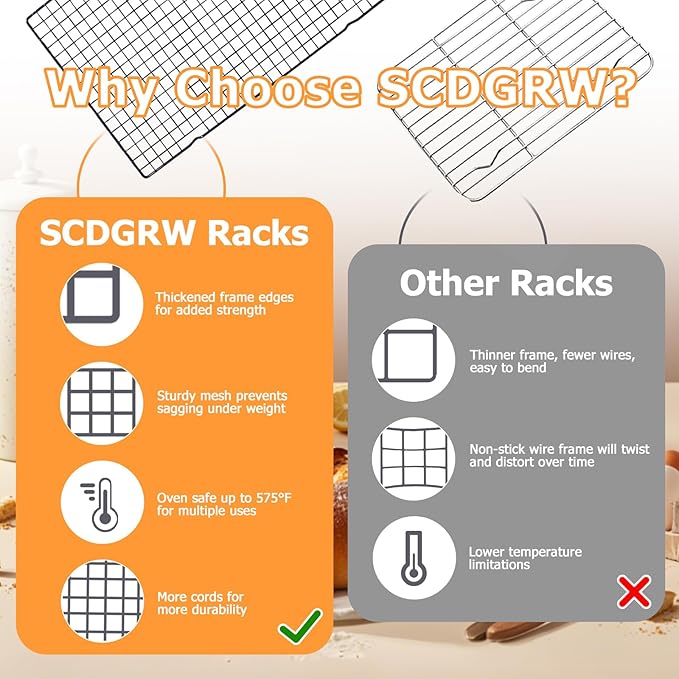 - 【OVEN-SAFE & DISHWASHER SAFE】due to the high heat tolerance of the Cooling rack design, Safe for oven & dishwasher safe use, so you can confidently roast, bake, grill, smoke, dry, and bbq.