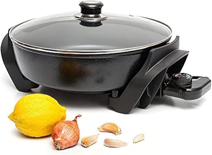 - Spoil Your Family With The Most Delicious Fried Delights: Take your cooking skills to the next level with our multipurpose and economically designed electric nonstick skillet. Glass lid with a steam vent combined with the heat-resistant handles will help you cook your favorite foods like a pro.