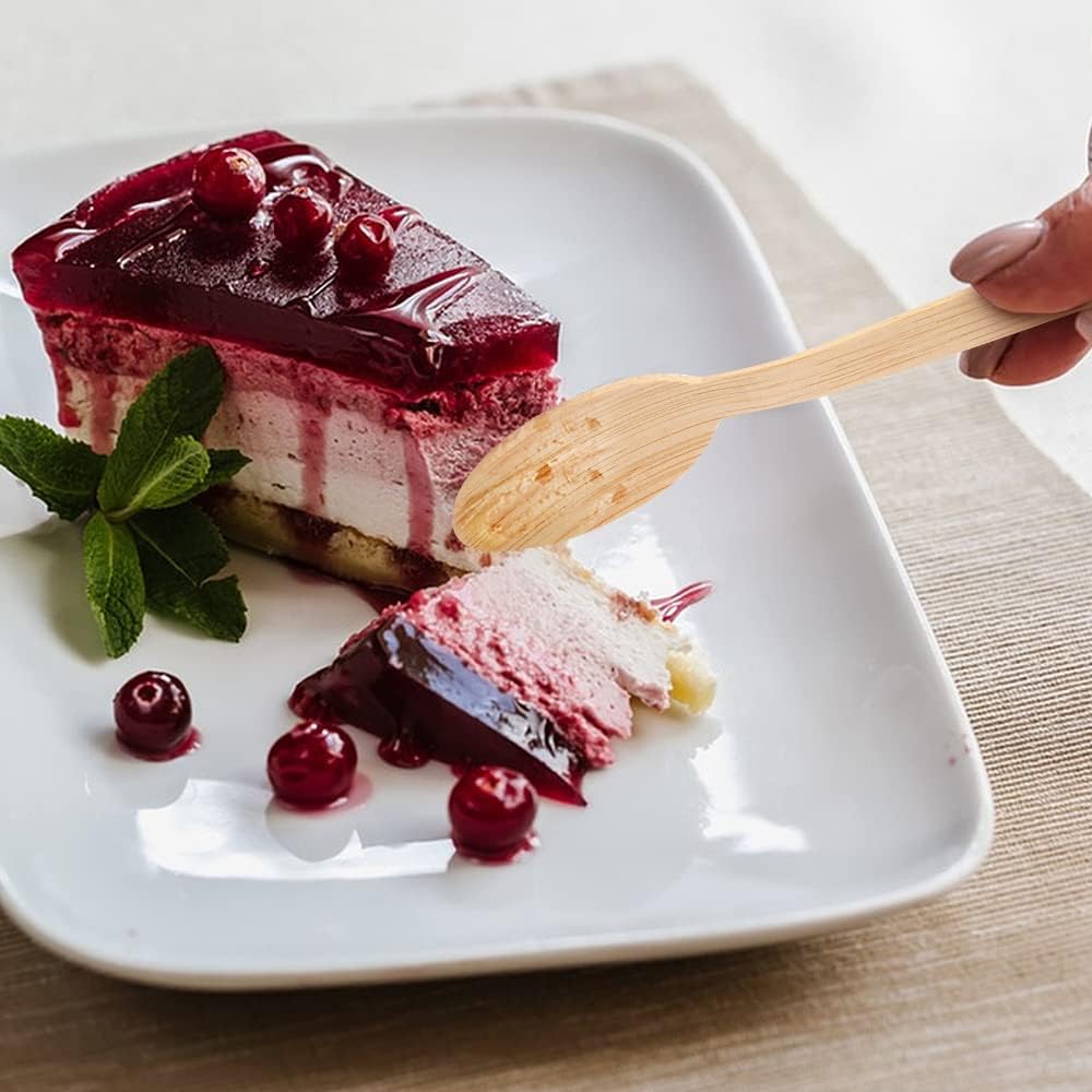 - ♻【What Is Included】This heavy-duty tableware includes 100 bamboo spoons, each measuring 6.7" (17cm). Made without harmful chemicals and designed to be splinter-free, these spoons are safe and reliable for everyday use. Perfect for desserts, rice, soup, ice cream, or powders, The disposable spoon allows you to enjoy a variety of cuisines with peace of mind.