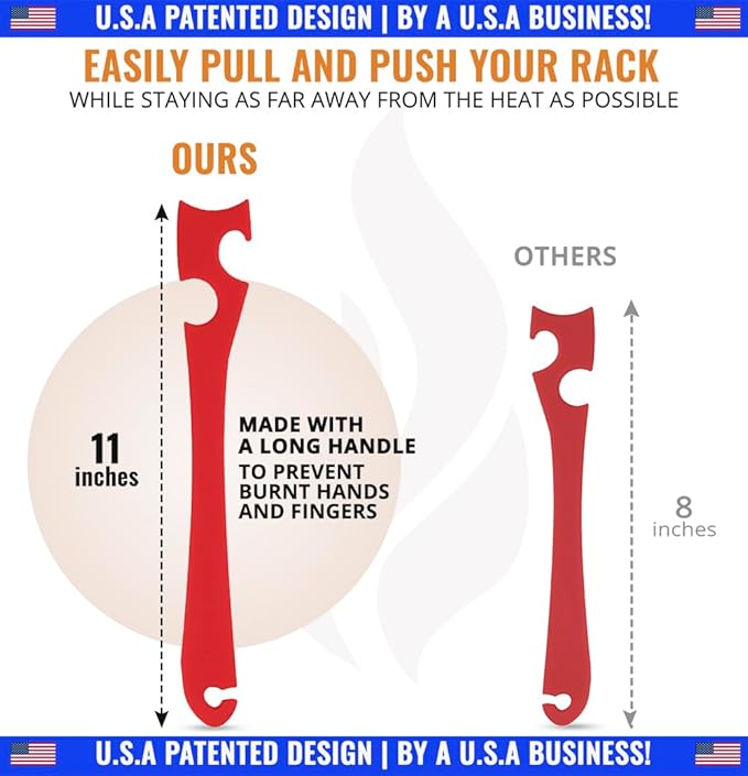 - COOL AND UNIQUE KITCHEN GADGET – Perfect for quickly pulling out and pushing back hot racks without need for oven gloves or hot pads that can be cumbersome.