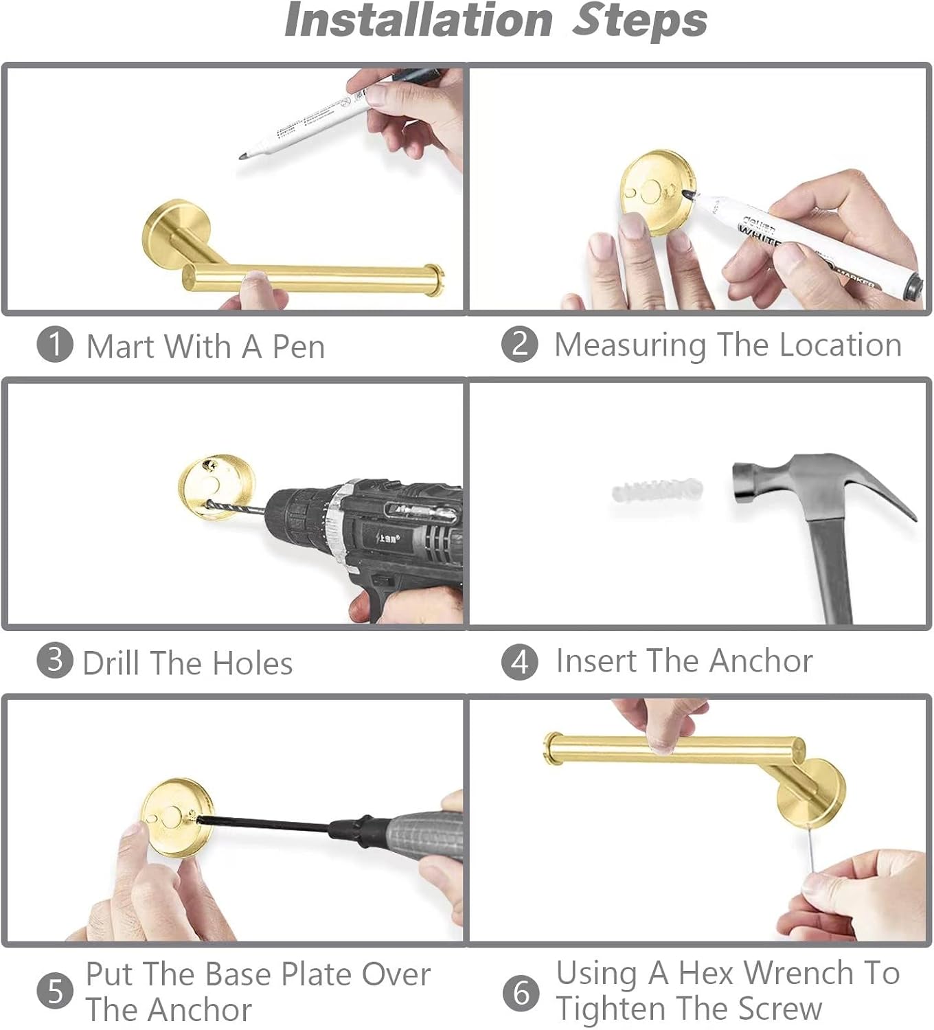 - 【EASY TO INSTALL】-- The gold towel rack come in a safe package with all hardware pack screw accessories and installation instructions manual required for installation in the package. If you still encounter difficulties, you can contact us via email to get the installation video.