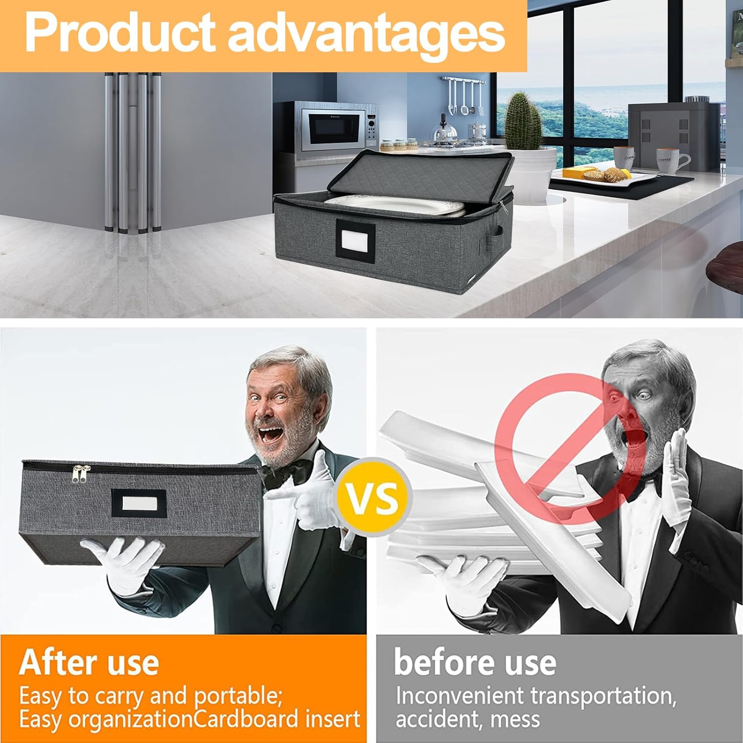 - 🐟Perfect design: The plate storage container can hold four platters, size 17*13*5.3 inch. 4 large felt dividers are included to help keep serving platters from bumping into each other.