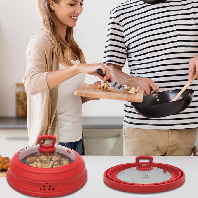 Microwave Splatter Cover Vented Glass Splatter Guard Lid with Collapsible Silicone for Food as Pot Cover 11.8 inch Large Plate for 6 7 8 9 10 11 inch Plate Bowl