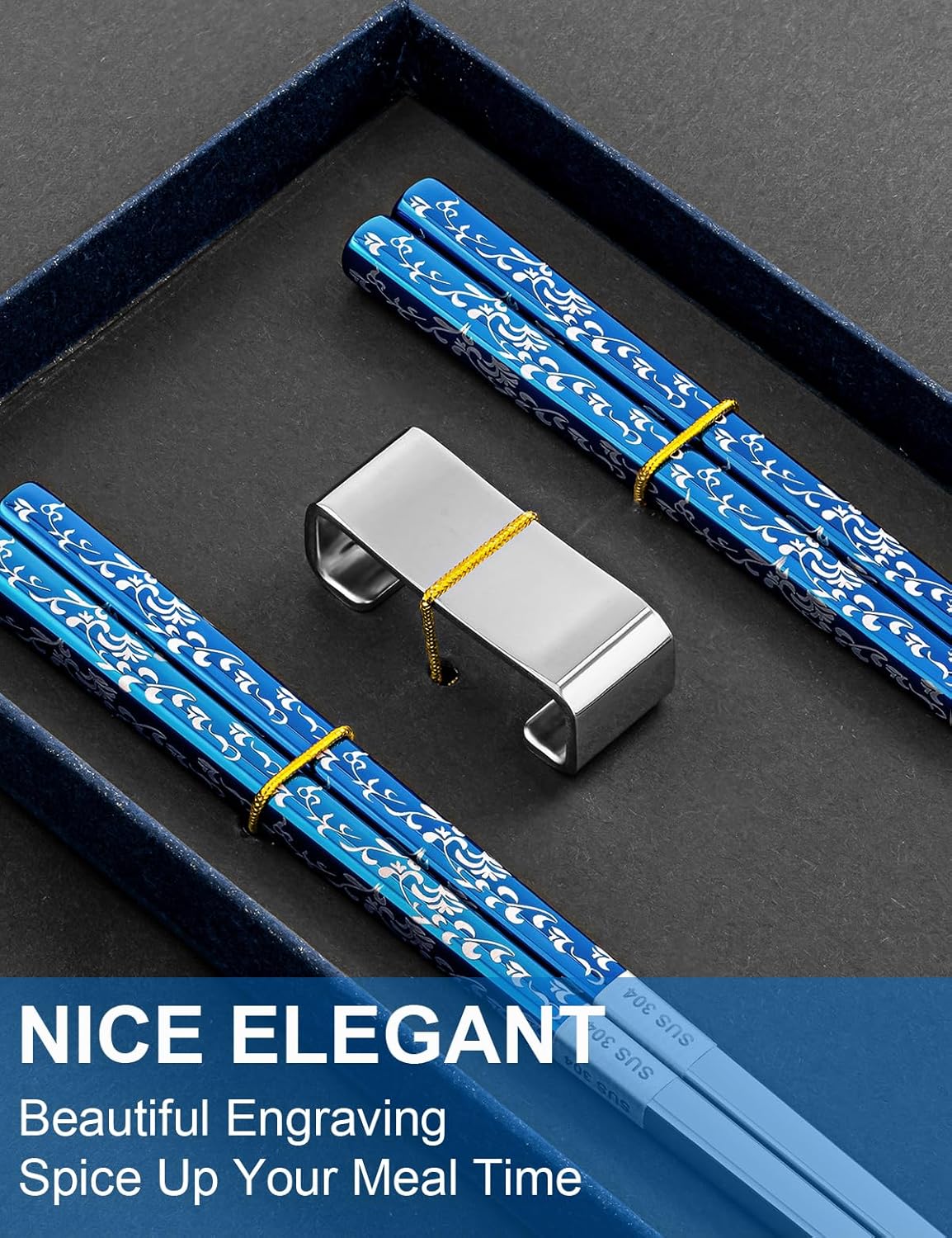 - 【PRETTY PRESENT SET】 2 pairs metal chopsticks with holder in a pretty present package. Craftsmanship and elegant chopsticks is a good present choice for Christmas, anniversaries, birthday party etc